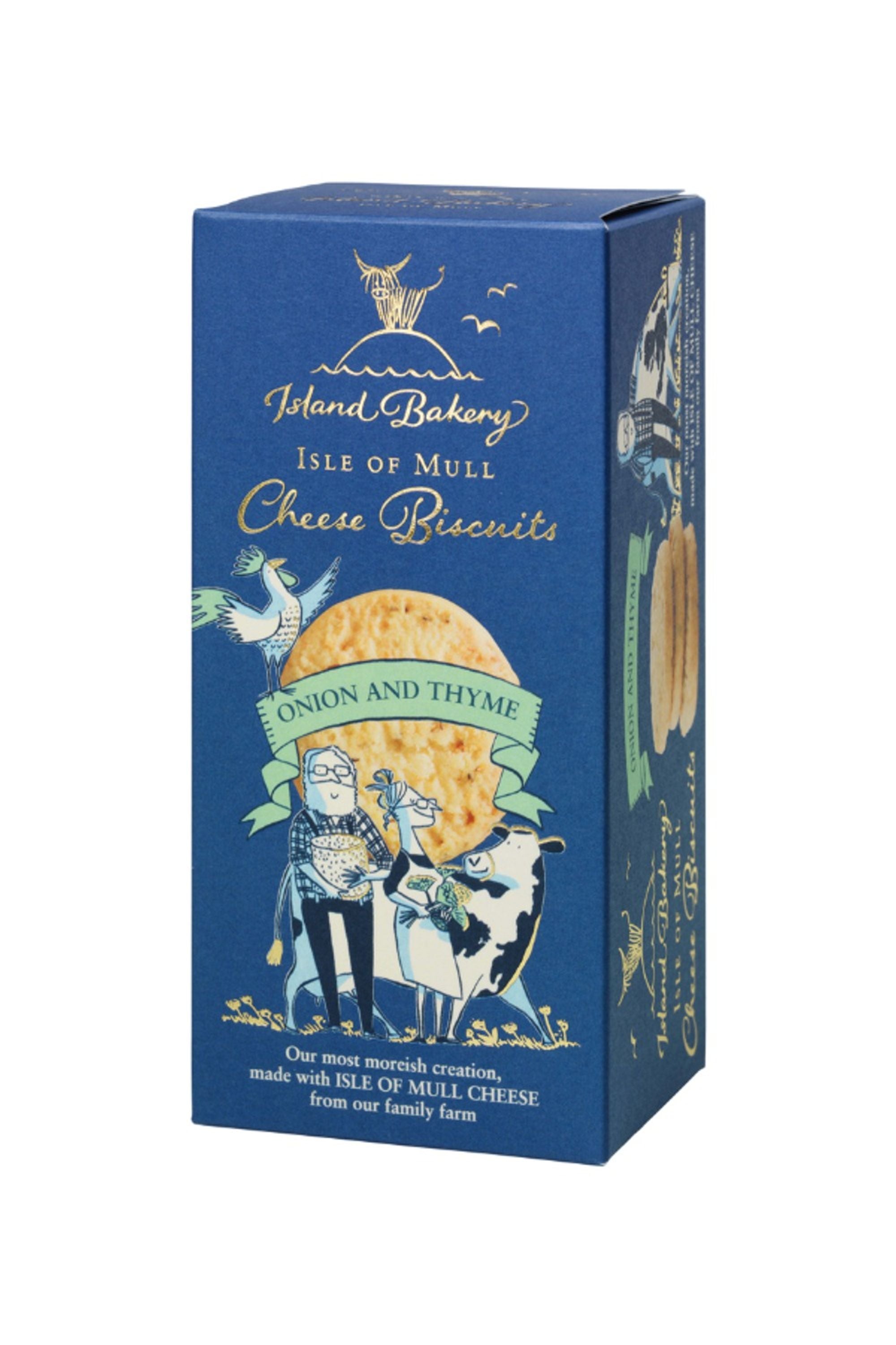 These all butter biscuits have a melt-in-the-mouth texture, with the Isle of Mull Cheese flavour combined with onion and aromatic thyme for a mellow savoury taste.