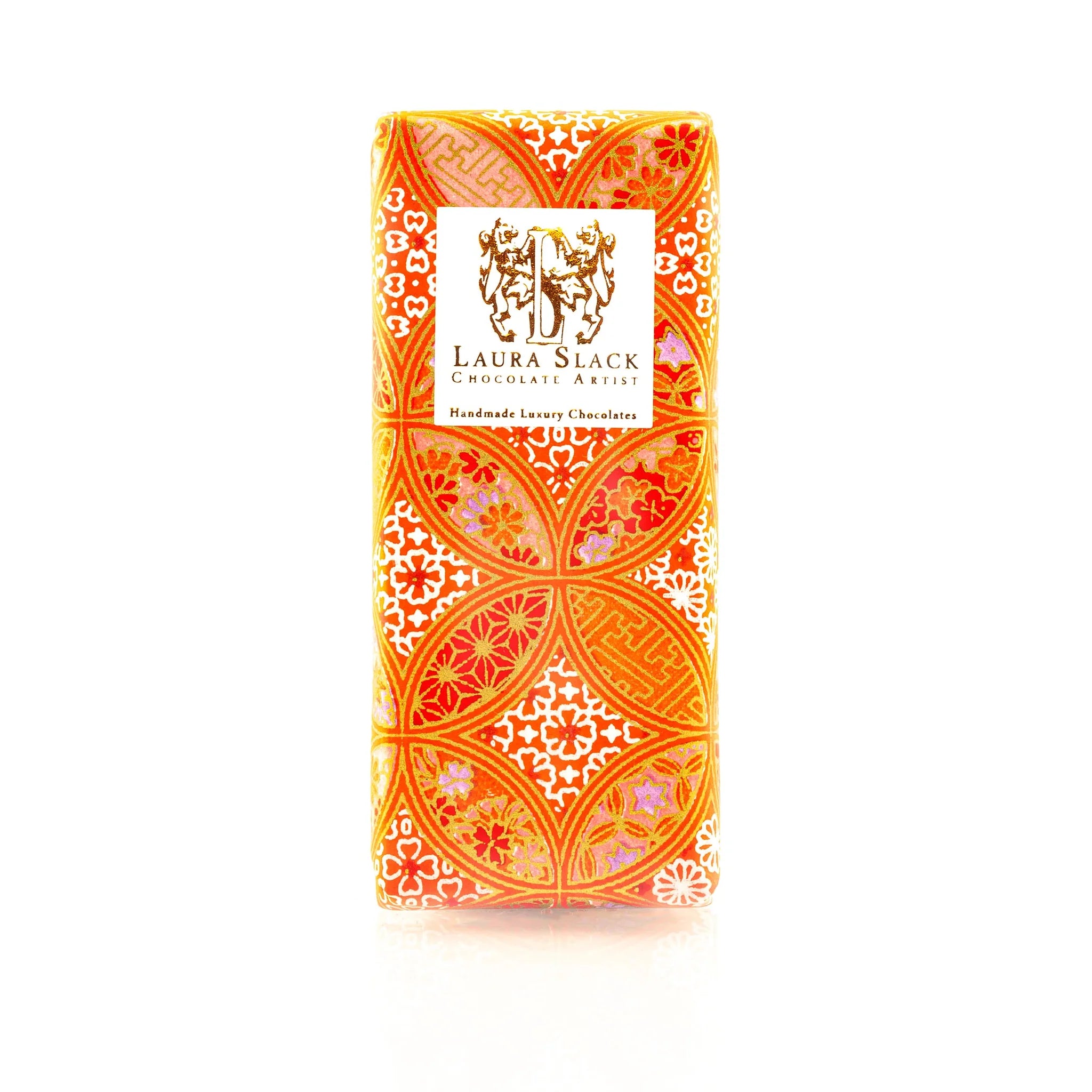 Handmade from the finest couverture chocolate, each bar is individually painted in luxurious colours.  Hand wrapped in authentic Japanese Chiyogami paper, each bar offers a superlative visual and taste experience for the true chocolate lover.