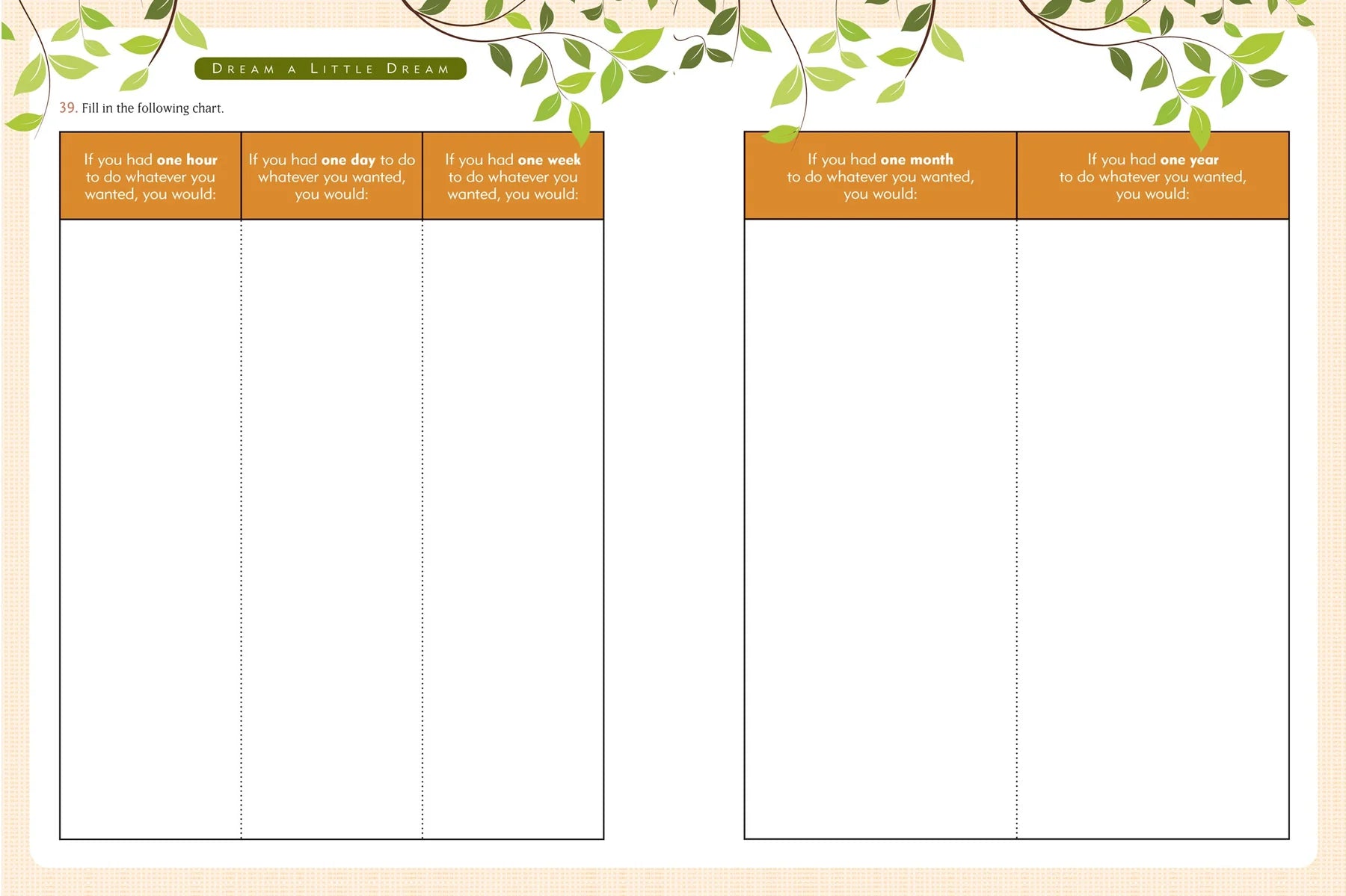 What do you want, out of life or for dinner? What are you great at? What's on your bucket list? What motivates you to get up in the morning?